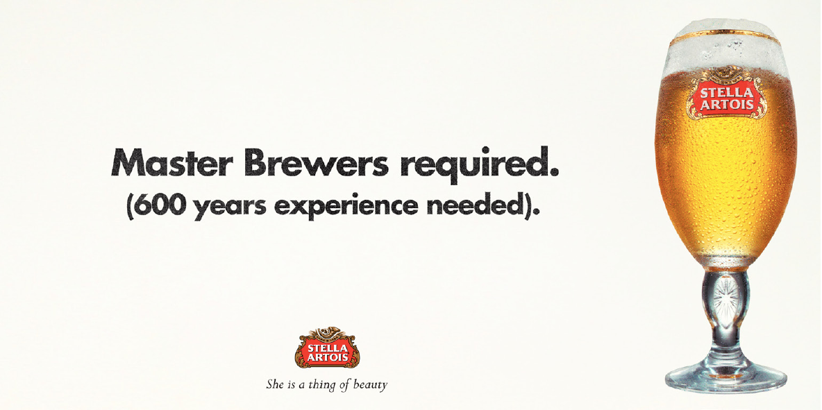 An exercise in old school copy writing and art direction for Stella Artois.